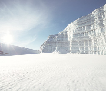 Expedíció az Északi-sarkra - napsütötte gleccserek.