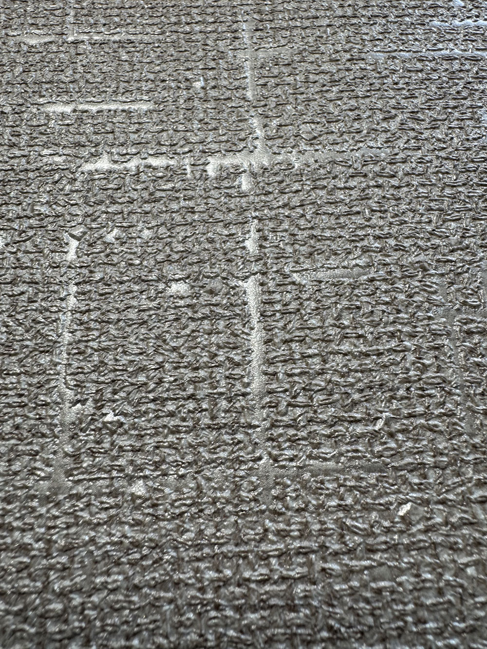 Luxus vlies tapéta vinil felülettel - fémes krémszínű durva szövet textúra, csillogó gyöngyházfényű háttérrel. A tapéta színei és tükröződései a fénytől függően változnak.