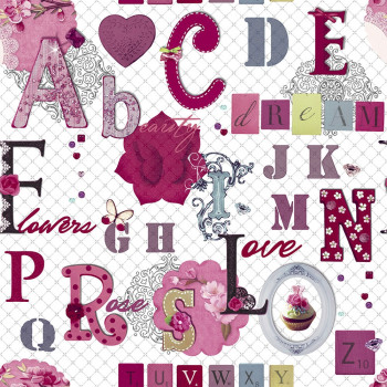 Scrabble - egy romantikus kollázs design, alkalmas egy lány szobájába. A háttér finom fémes minta. Kombináld a kapcsolódó mintákkal.