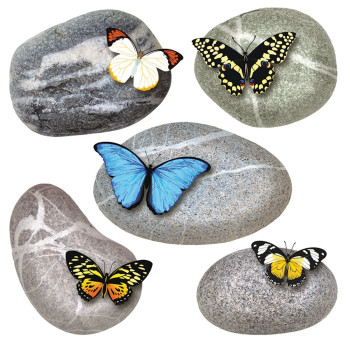 Öntapadós dekoráció 30 x 30 cm, Pillangók a köveken. Könnyen és gyorsan változtassa meg a belső tér megjelenését! Javasoljuk, hogy sima felületre ragassza.