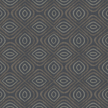 Vlies sötétkék tapéta - afrikai stílusú, barna mintás, fémes részletek.