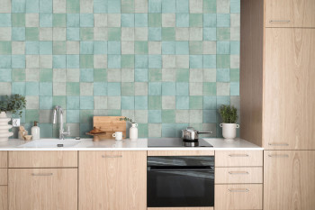 Luxus durva textúrájú vlies tapéta vinil felülettel, világoszöld csempe mintával. Csempe mérete kb.10,5x10,5cm.