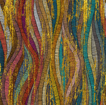 A hagyományos ruhák és ékszerek által inspirált színes poszter tapéta életörömöt sugároz, amely a színek és a minták új értelmezésében jelenik meg a szobában. A tapéta gyűrött megjelenésű.