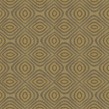 Vlies sötét okker tapéta - afrikai stílusú, barna mintás, fémes részletek.