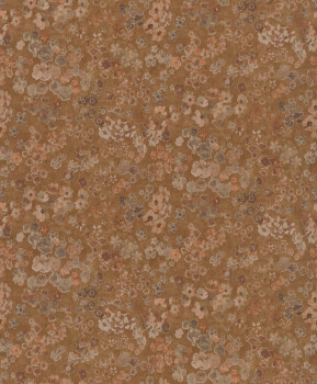 Barna vlies tapéta vinil felülettel, barna és narancssárga árnyalatú virágmintával, durvább szövet textúrával.