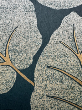 Félfényes zöld vlies tapéta levelekkel, arany szárral.