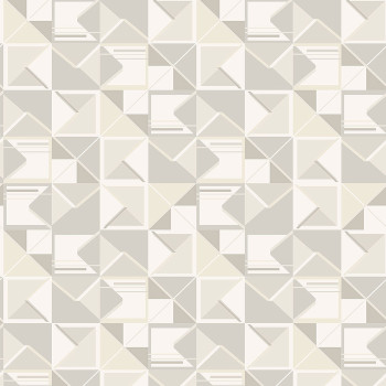 Geometrikus mintás vlies tapéta. A tapéta színei: fehér, szürke, bézs, ezüst.