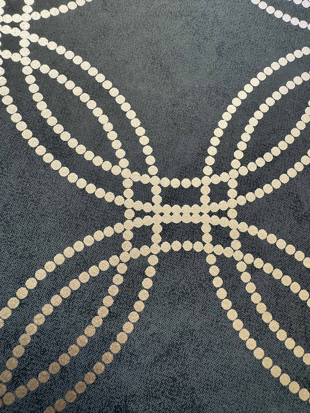 Sima fekete vlies tapéta rózsarany geometriai mintával.