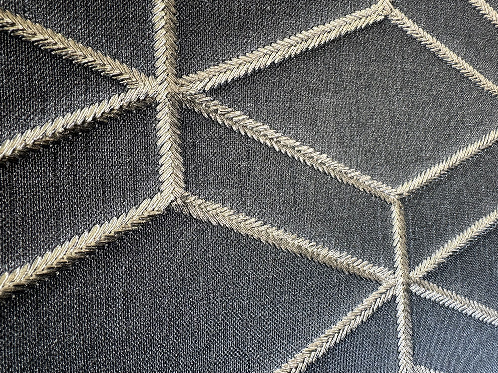 Luxus, vlies tapéta vinil felülettel - selymes fekete szövet kialakítása, finom félfényes, a minta körvonalai - fémes metál arany „varrás”.
