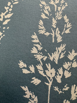 Zöld nem szőtt tapéta vinil felülettel, bézs réti füvek motívumával.
