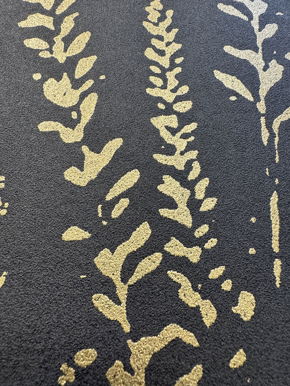 Fekete, nem szőtt tapéta vinil felülettel, arany réti füvek motívumával.