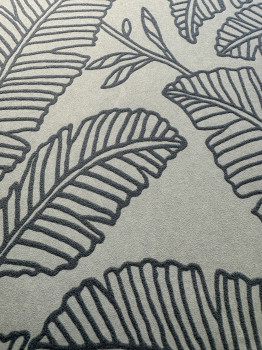 Zöld gyapjú tapéta, dombornyomott levélkontúrokkal.