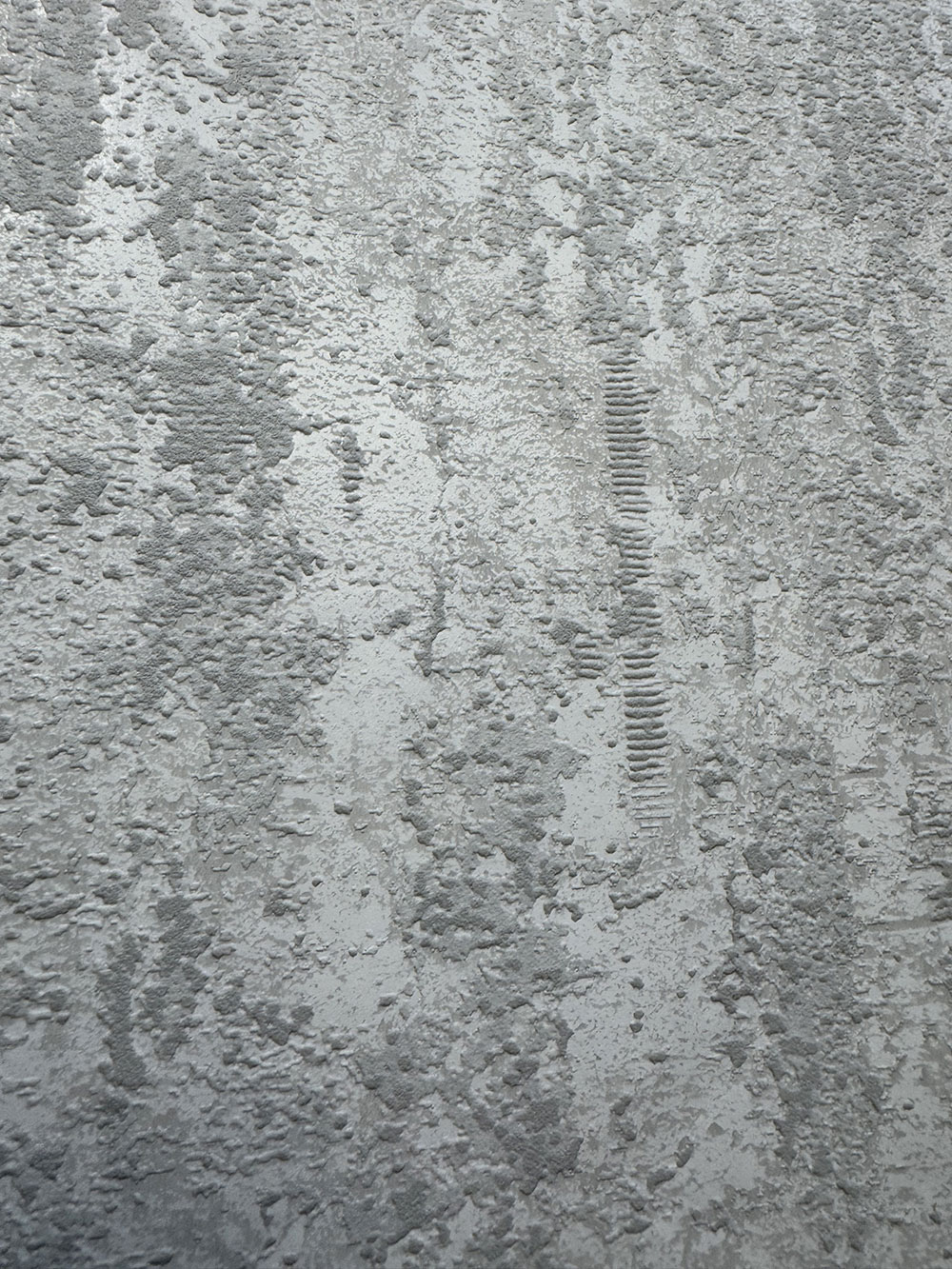 Dombornyomott bézs gyapjú tapéta, durva stukkó, beton utánzata.