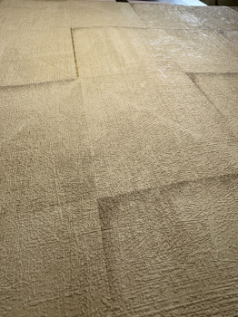 Finom dombornyomott bézs-szürke geometrikus vlies tapéta vinil felülettel, 3D csempeutánzattal, arany részletekkel.