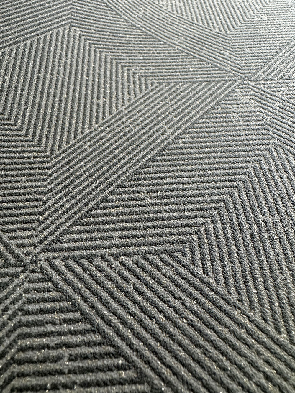 Geometrikus vlies tapéta, szürke és barna árnyalatok, kis fémes csillogás.