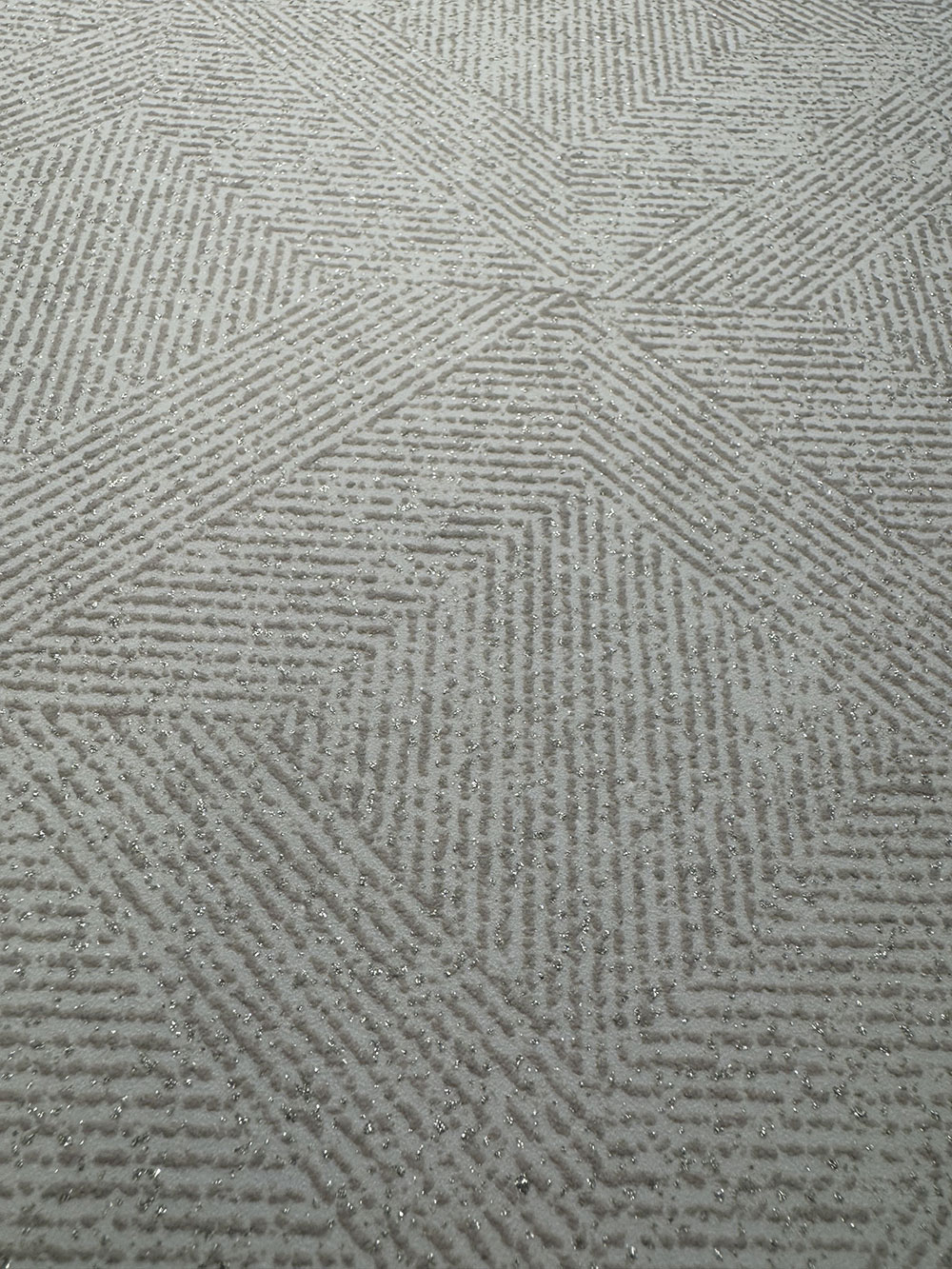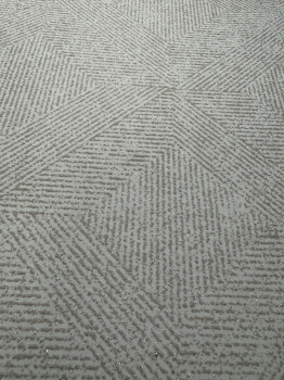 Geometrikus vlies tapéta, bézs és krémszínű árnyalatok, kis fémes csillámok.
