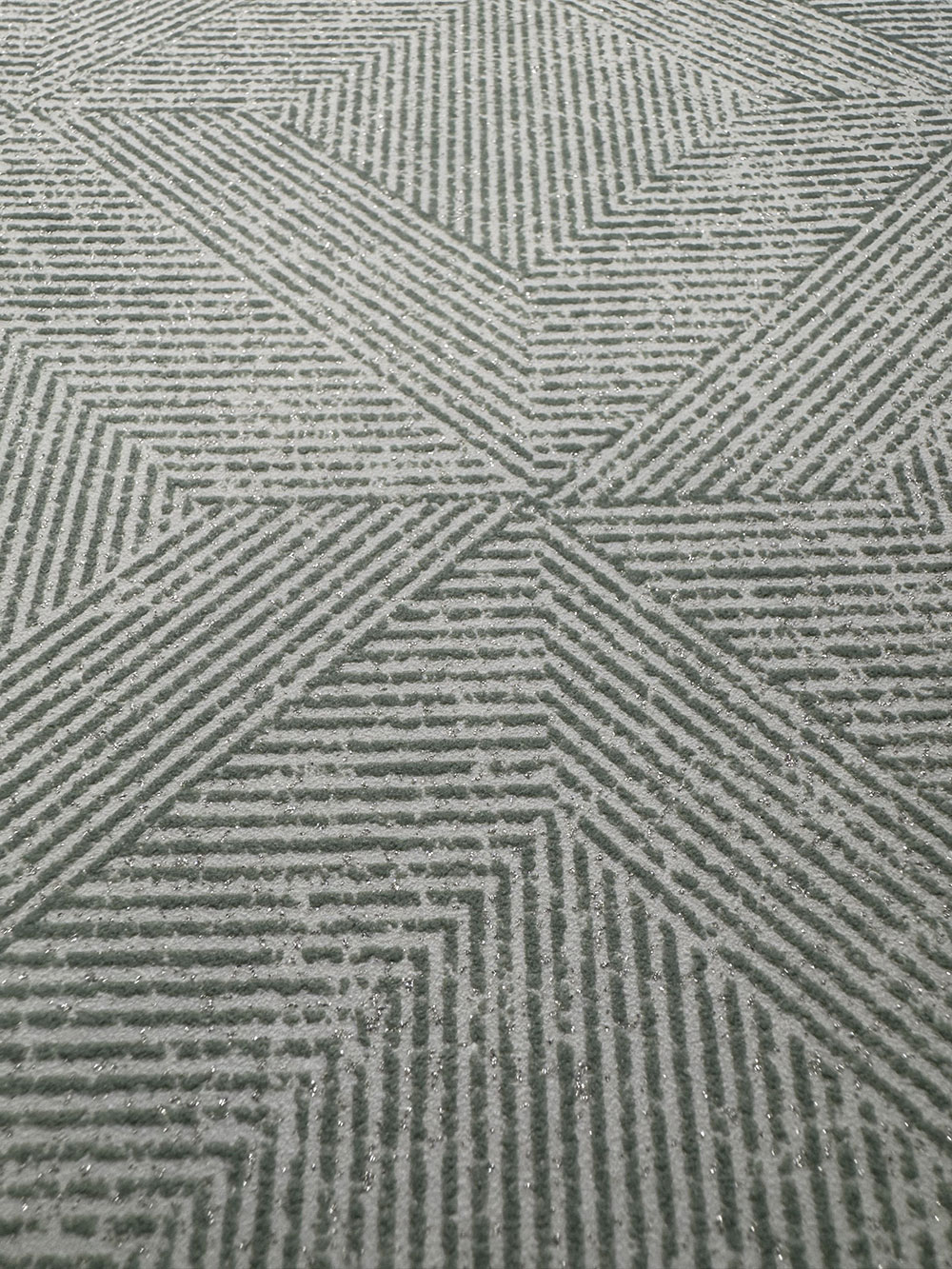 Geometrikus vlies tapéta, zöld árnyalatok, kis fémes csillámok.