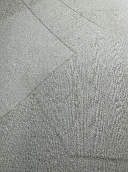 Geometrikus vlies tapéta, különböző textúrákból és fémes csillogásból álló minta.