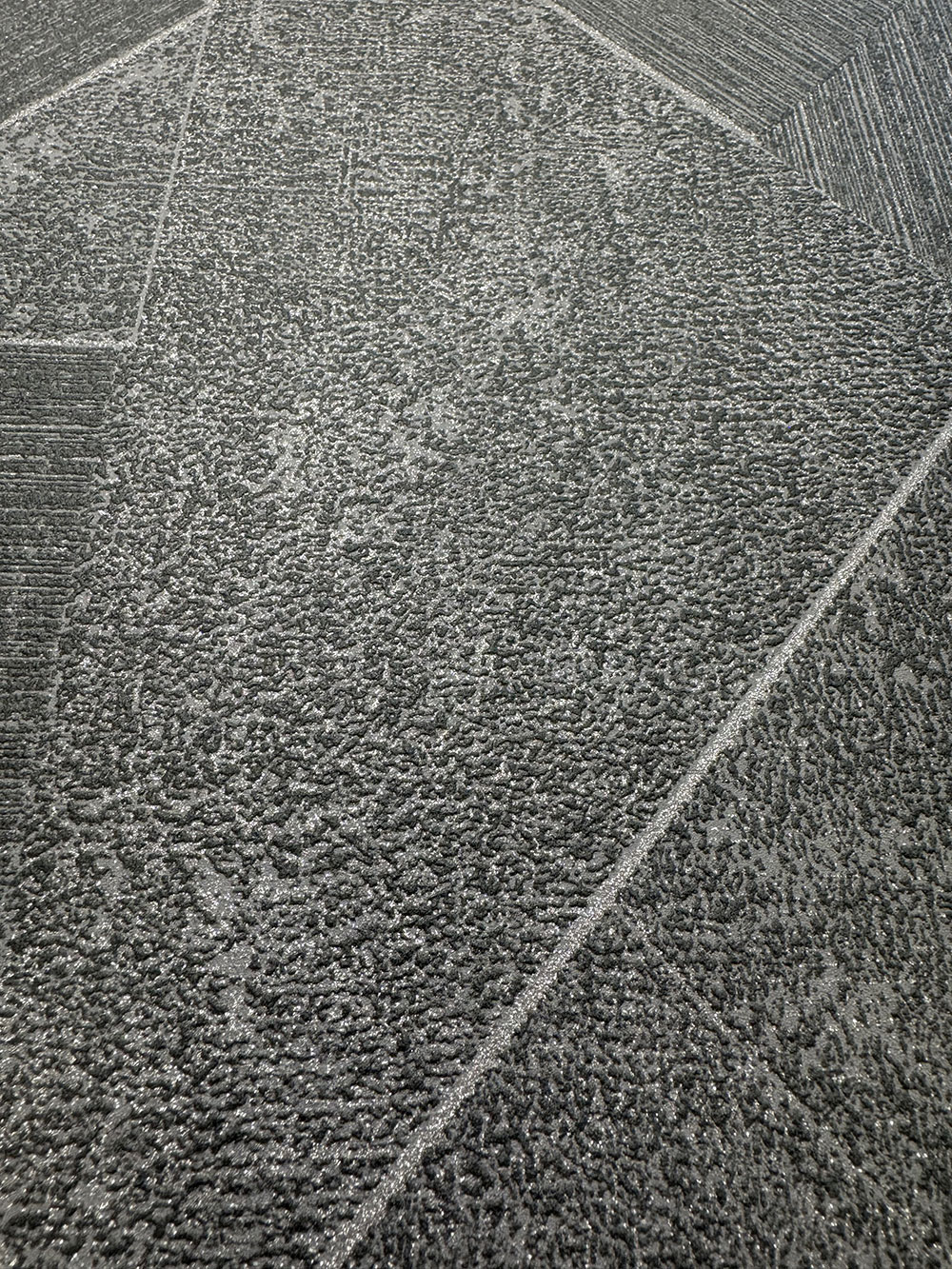 Geometrikus vlies tapéta, különböző textúrákból és fémes csillogásból álló minta.