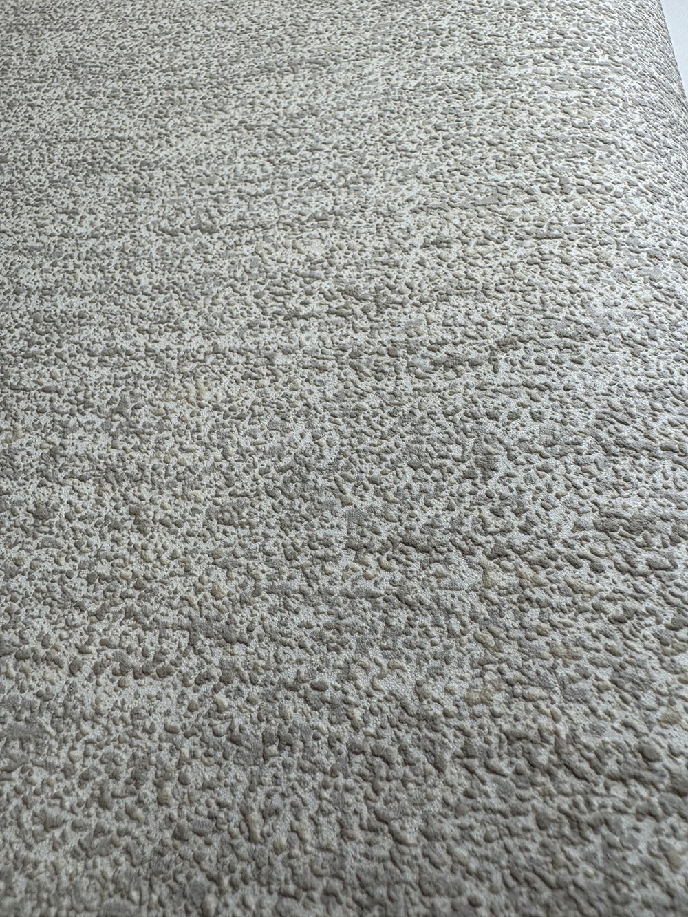 Szürke-bézs vlies tapéta, durvább dombornyomott textúra.