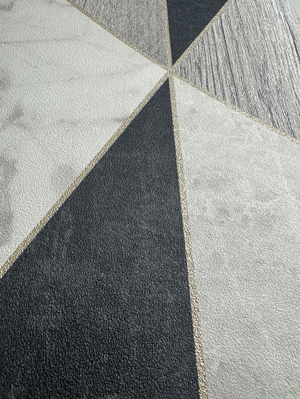 Geometrikus vlies tapéta, barna, bézs és szürke-fekete árnyalatok. Fa és márvány motívum, bézs színű fémes kontúrok.