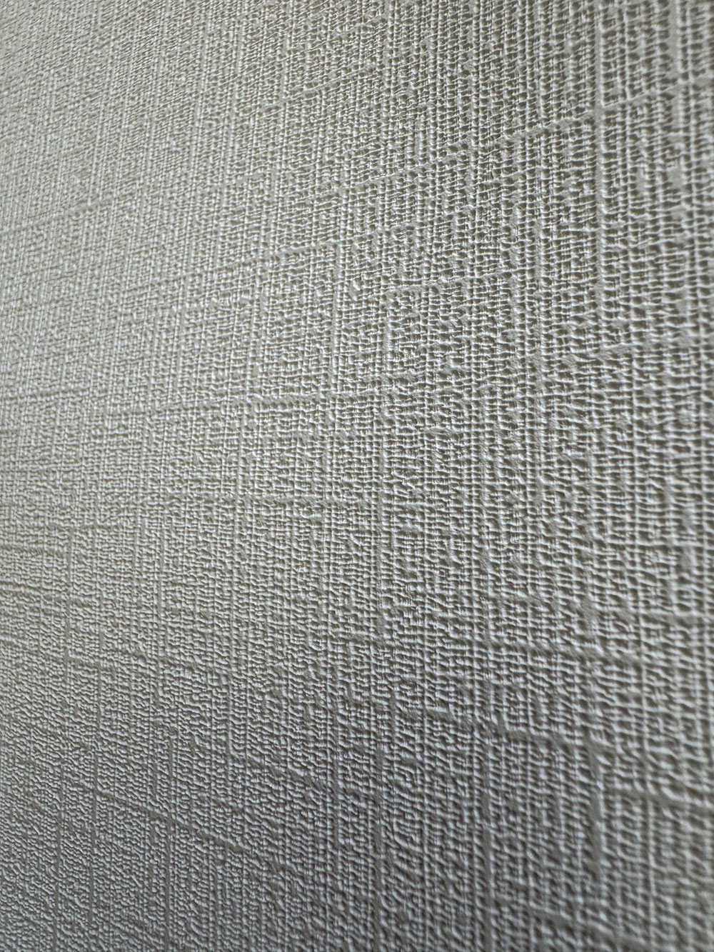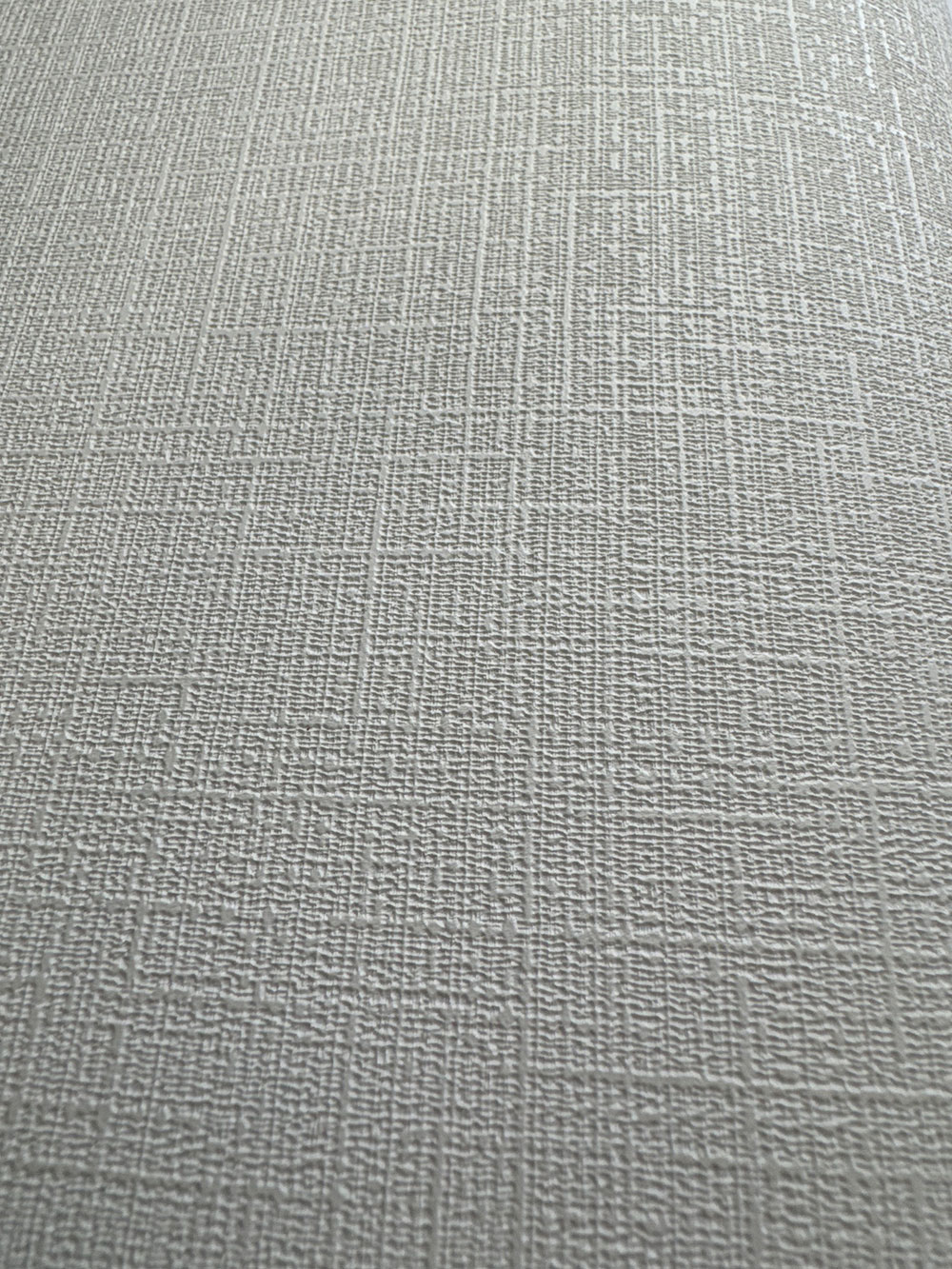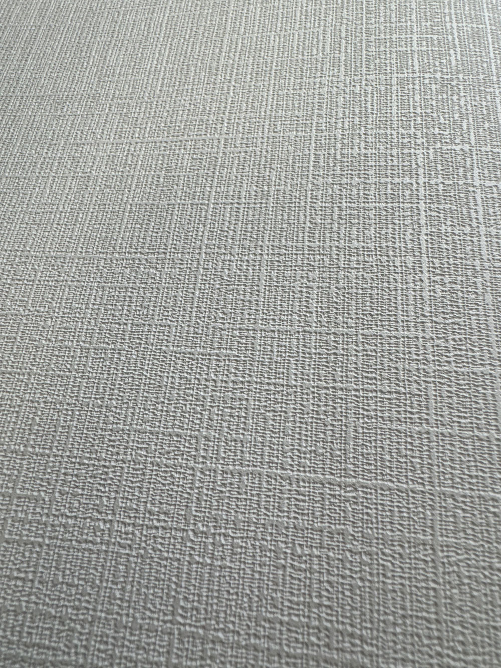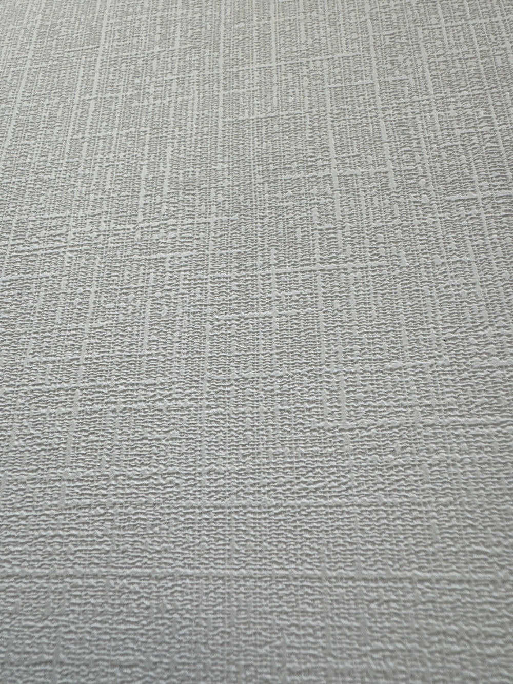 Fehér vinyl felületű tapéta, finom textilstruktúrával.