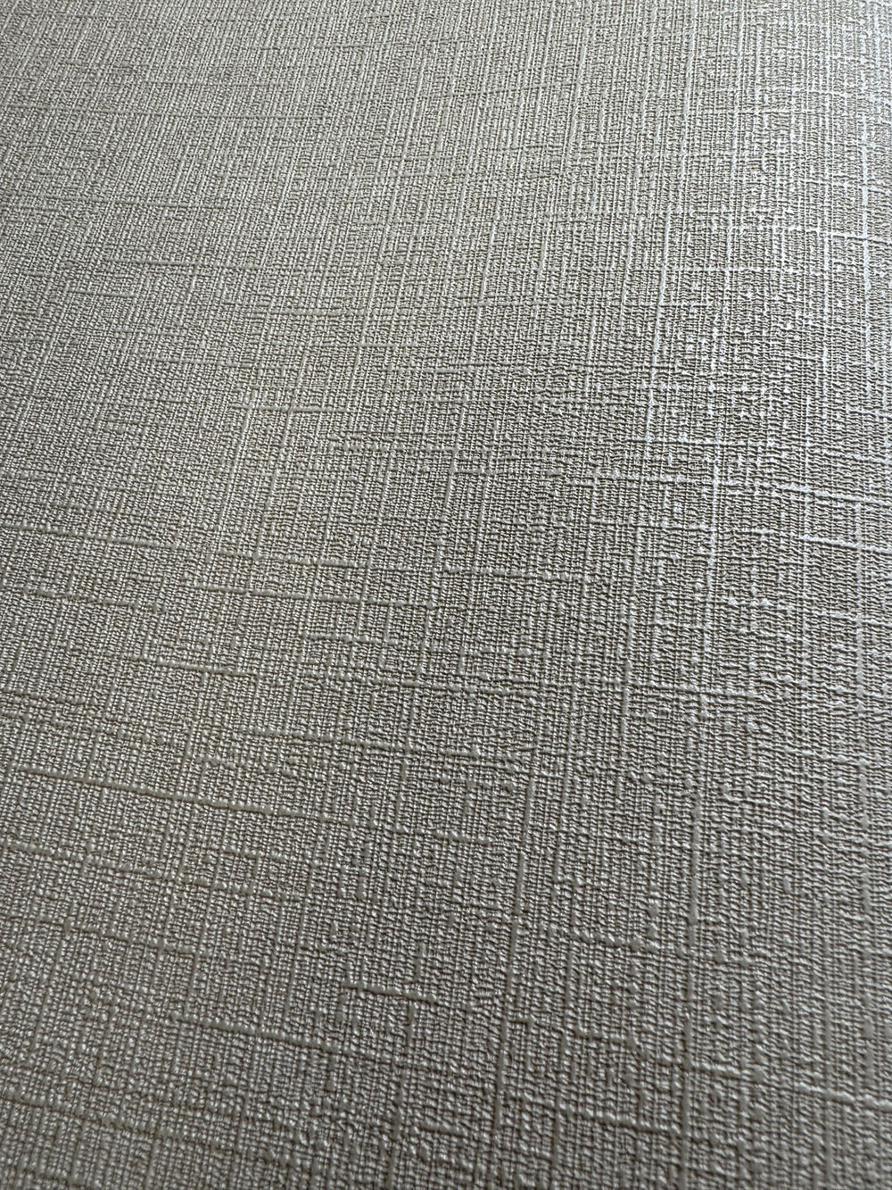 Bézs vinyl felületű tapéta, finom textilstruktúrával.