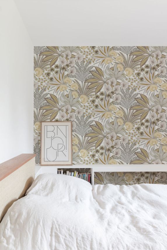 Szürke-bézs vlies tapéta, levelek, A69002, Vavex 2026