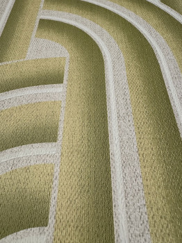 Vlies tapéta, grafikus retro minta zöld és bézs árnyalatokban, finom textúra.