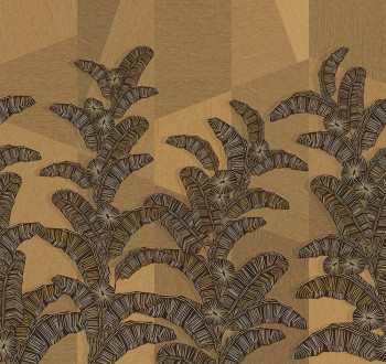 Vlies fotótapéta, durvább textilt idéző háttér és etno levélmintát formáló vonalak, barna árnyalatai.