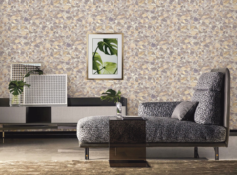 Vinil, krém, kőutánzatú tapéta.