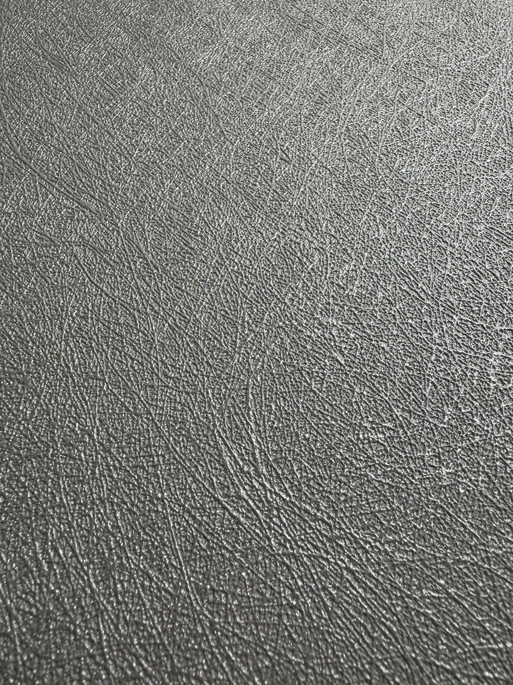 Vlies tapéta vinil felülettel, szürkés-ezüst félfényes, finom rostos textúrával.