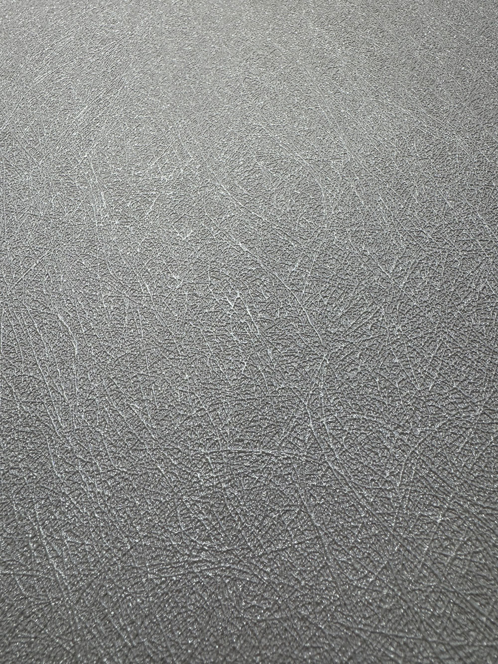 Vlies tapéta vinil felülettel, szürkés-ezüst félfényes, finom rostos textúrával.