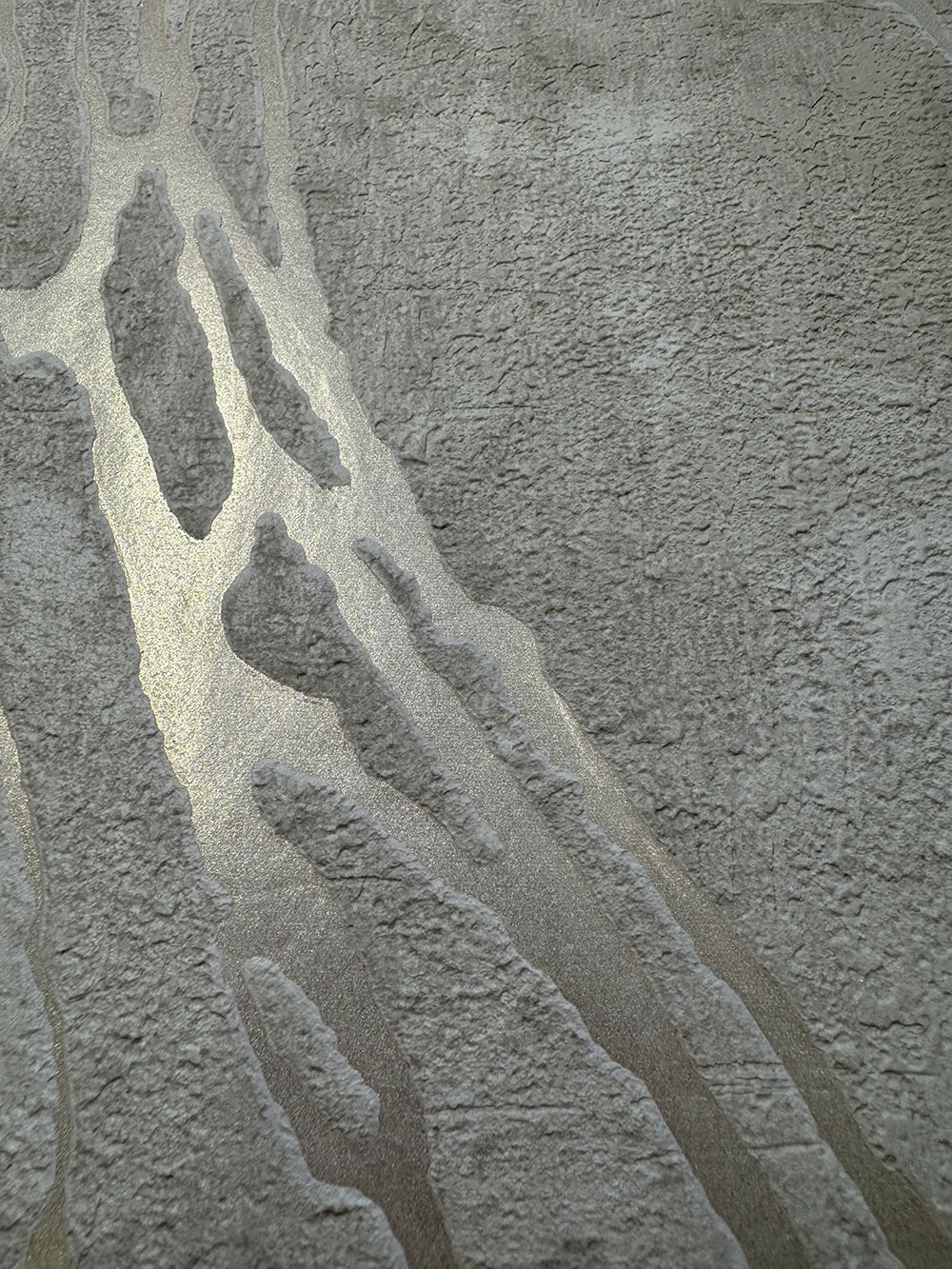 Vlies tapéta vinil felülettel, stukkó/beton utánzat bézs árnyalatokban, fémes préselt vonal.