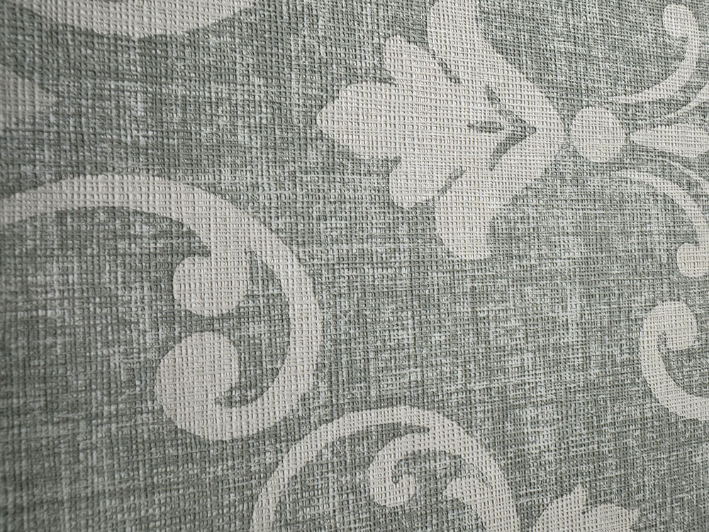 Vlies tapéta vinil felülettel, finom szövet textúrával, ornamentális barokk mintával, zöld árnyalatokkal.
