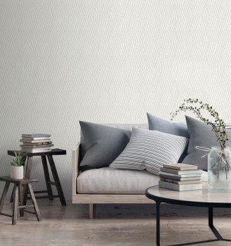 Vlies, szürke-fehér tapéta geometrikus mintával, ezüst metál csíkkal.