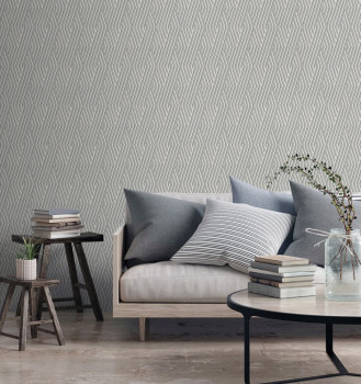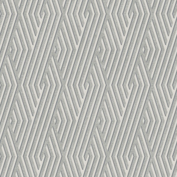 Vlies, szürke tapéta geometrikus mintával, ezüst metál csíkkal.