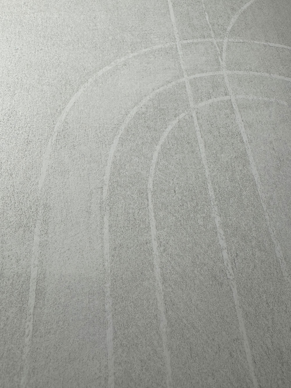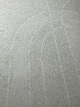 Vlies tapéta falra, szürke árnyalatokban, Art Deco stílusú grafikus mintákkal.