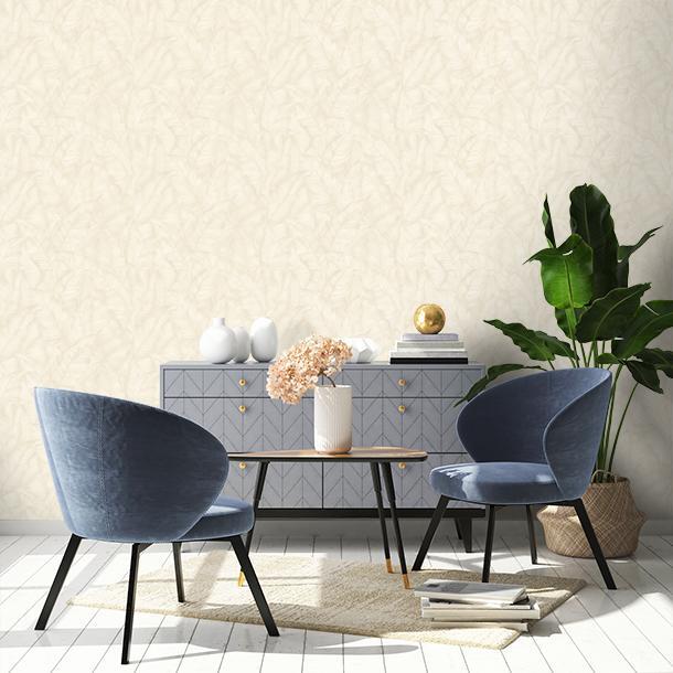 Luxus tapéta vinil felülettel, domború levelek fehér és krémszínű árnyalatokban.