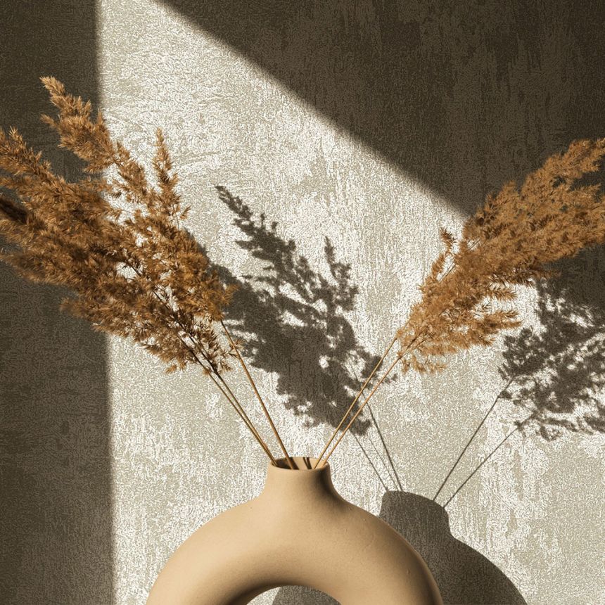 Vinil felületű tapéta barna-szürke stukkóvakolat dekorral, matt és enyhén fényes felülettel, finom textúrával.