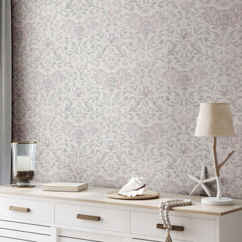 Tapéta, szürke-bézs, rózsaszín, ornamentika, 35150, City Romance, Marburg