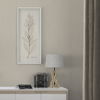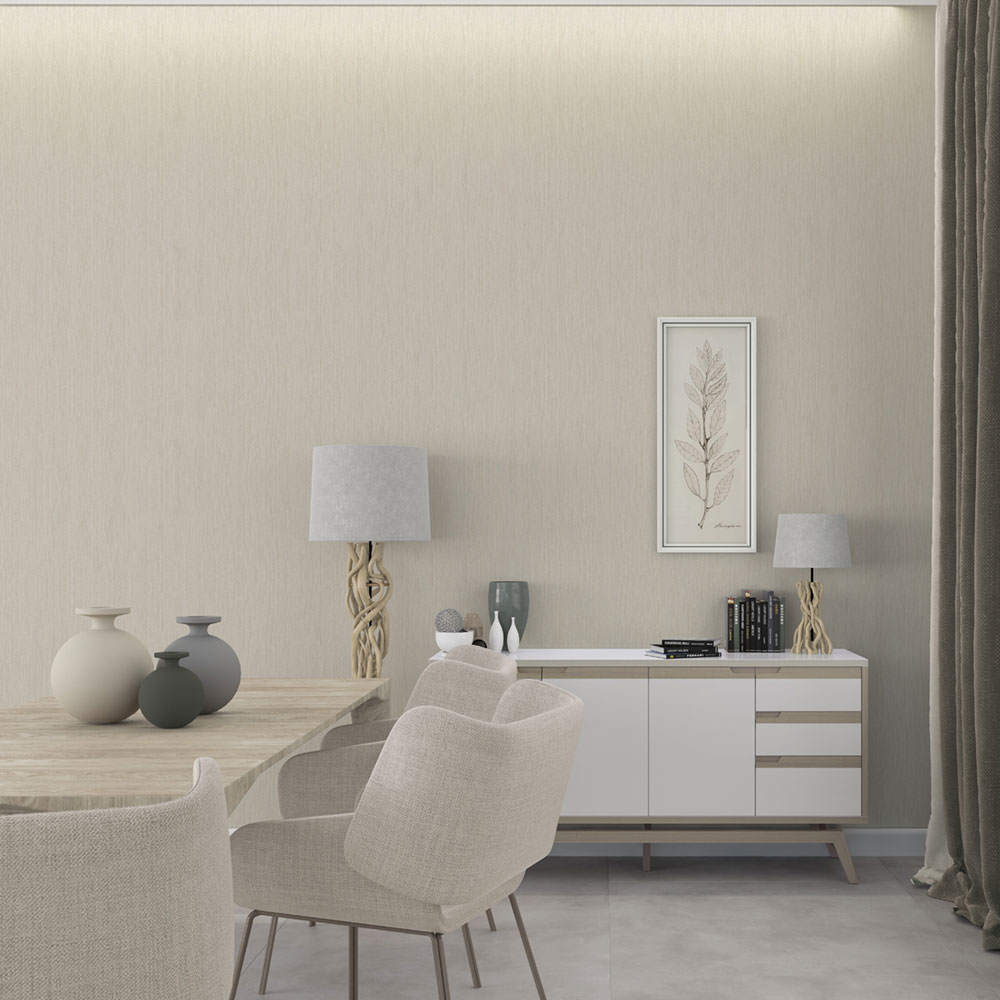 Vinil felületű tapéta, függőleges textúrával, amely a fa erezetét idézi, krémszín árnyalatokban.
