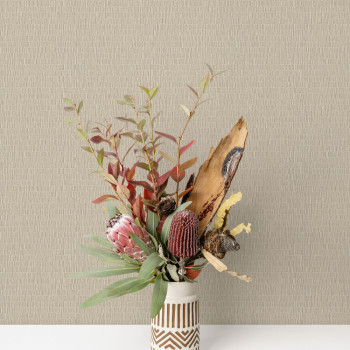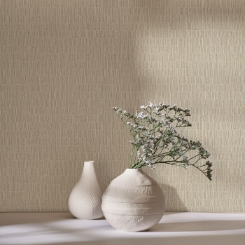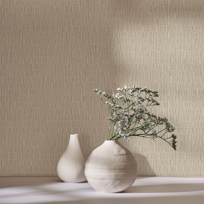 Vinil felületű tapéta, vízszintes csíkozású minta függőleges fa textúrákból, bézs árnyalatokban.