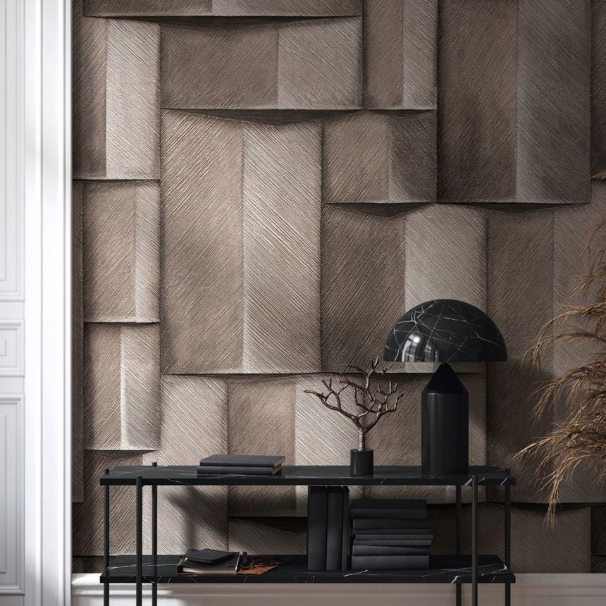Vinil felületű tapéta, finom textúrával, grafikus mintával, árnyékolás 3D hatást kelt.