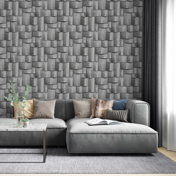 Grafikus tapéta, szürke, 3D hatás, 35381, Timber, Marburg