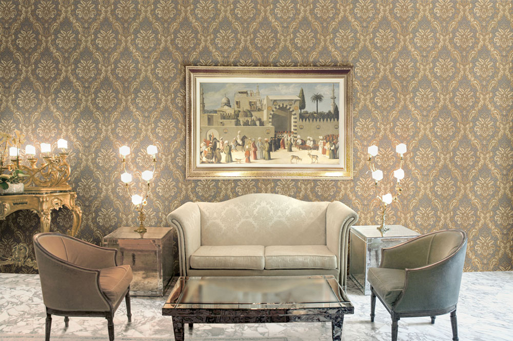 A damaszk textíliákat hűen utánzó tapéta kollekció, magas esztétikai értékekkel. A tapéta nem csak a klasszikus belterekben, hanem a modern bútorokkal berendezett helyiségekben is megállja a helyét.