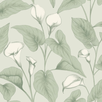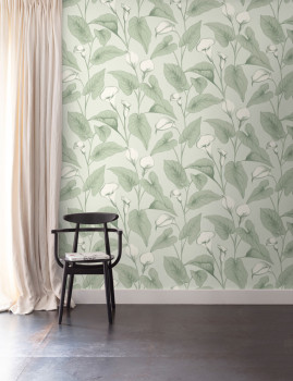 Tapéta, zöld, virágok, levelek, A83601, Inia, Grandeco
