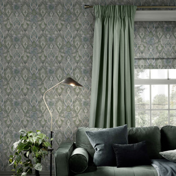 Tapéta, zöld-kék, etnikai minták, 142306, Jaipur, Graham Brown Premium