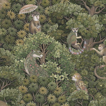 Tapéta, zöld, levelek, majmok, 142310, Jaipur, Graham Brown Premium