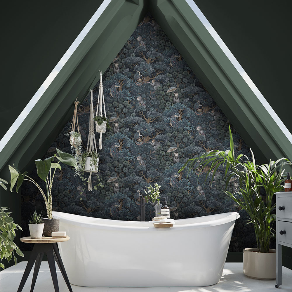 Tapéta, kék, levelek, majmok, 142313, Jaipur, Graham Brown Premium